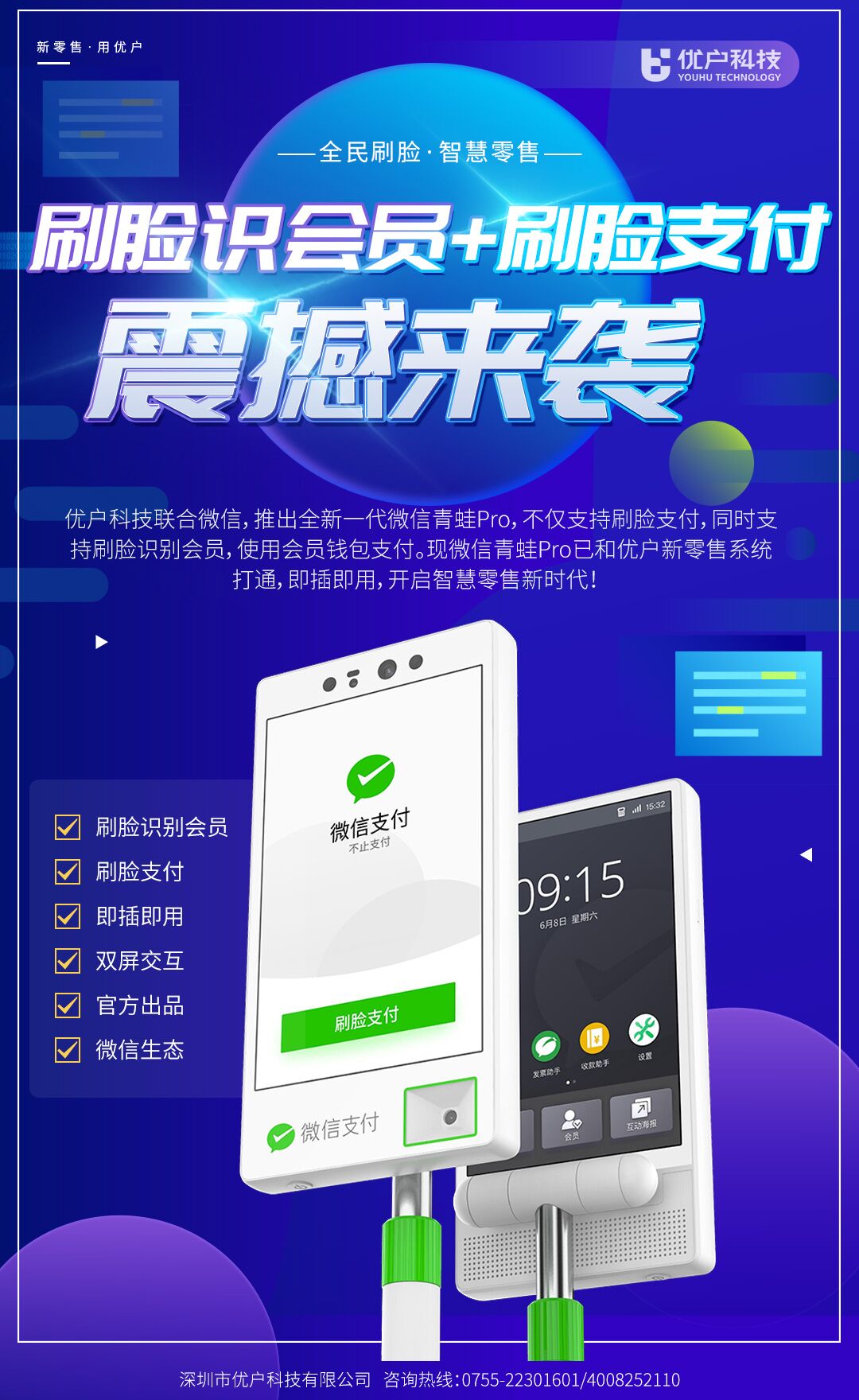 [微信支付系統]微信刷臉人臉識別支付系統,會員零售刷臉支付——優戶科技