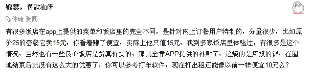 但同時有網友很質疑o2o外賣促銷后的質量: